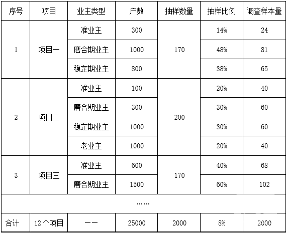 上书房咨询根据物业公司的各项目业主入住时长、总样本量因素进行分析,按照客户预期计划调查样本量进行抽样。